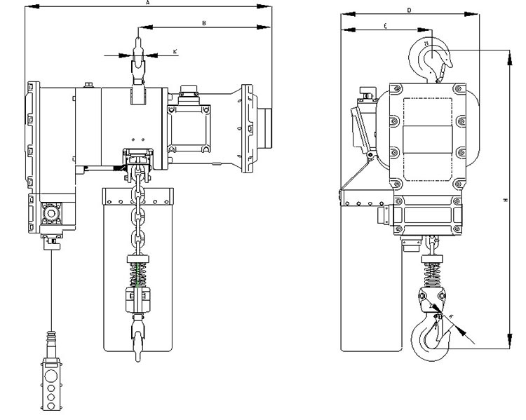 BHH防爆環(huán)鏈電動葫蘆簡介:BHH型防爆電動葫蘆是小噸位、低起升高度的鋼絲繩電動葫蘆的理想替代產(chǎn)品。一般安裝在架空工字鋼軌道上,或懸掛在固定架和專用吊具上起吊貨物及與設(shè)備配套到等,廣泛應(yīng)用到工廠、礦山、倉庫、碼頭、建筑工地、商場、賓館等行業(yè),尤其適合低矮場合及存在灰塵、潮濕腐朽氣體等環(huán)境。BHH型防爆環(huán)鏈電動葫蘆是參照并吸收了國內(nèi)外同類產(chǎn)品的結(jié)構(gòu)優(yōu)點(diǎn)而設(shè)計的,它不但具備了國外產(chǎn)品的很多優(yōu)點(diǎn),而且還具備維修方便、實(shí)用可靠、價格低廉等優(yōu)點(diǎn),從而更適應(yīng)于我國的實(shí)際國情。